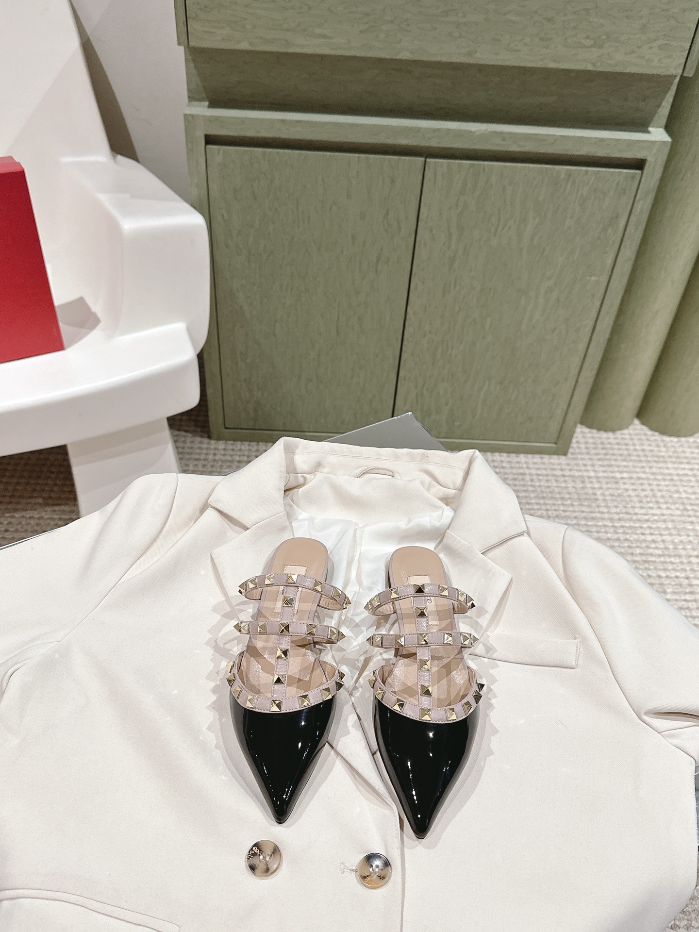 ROCKSTUD Valentino ONE STUD Vintage Craft Pyramid Large Rivet Buckle Flat Shoes– TFYP Comcany