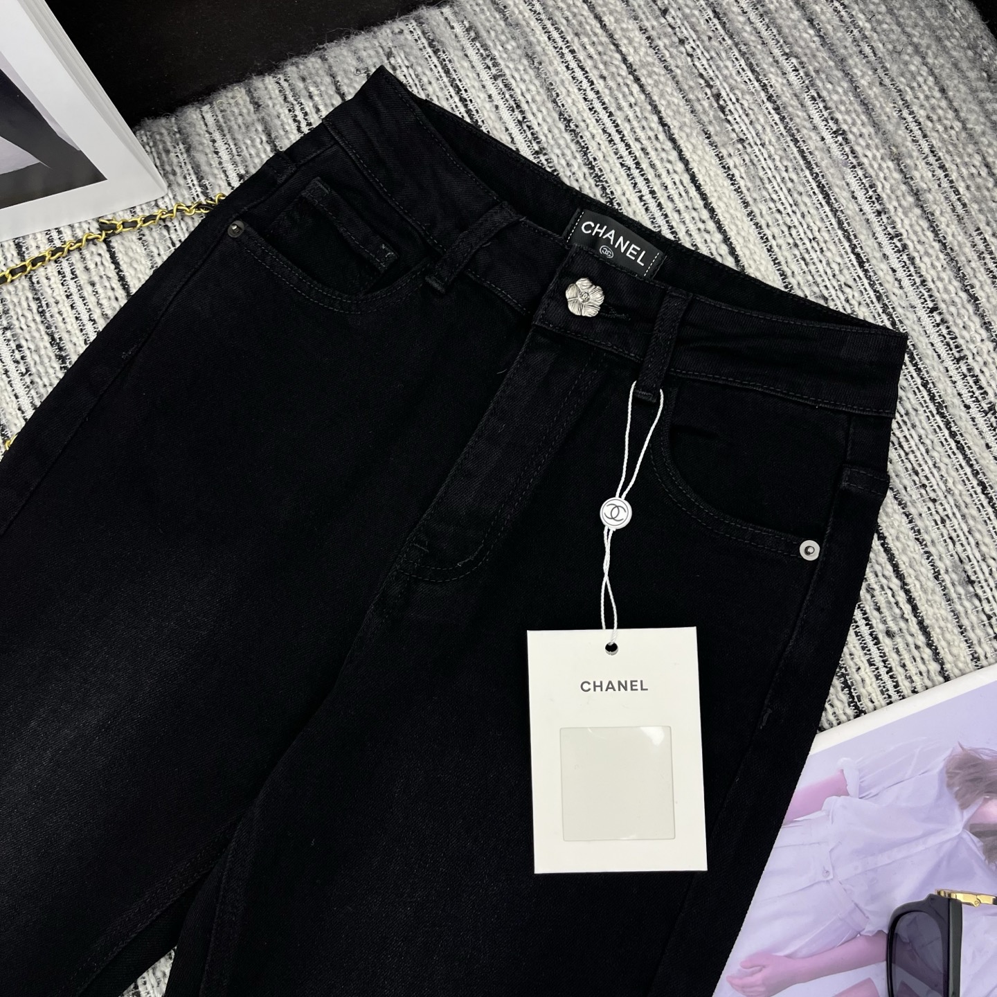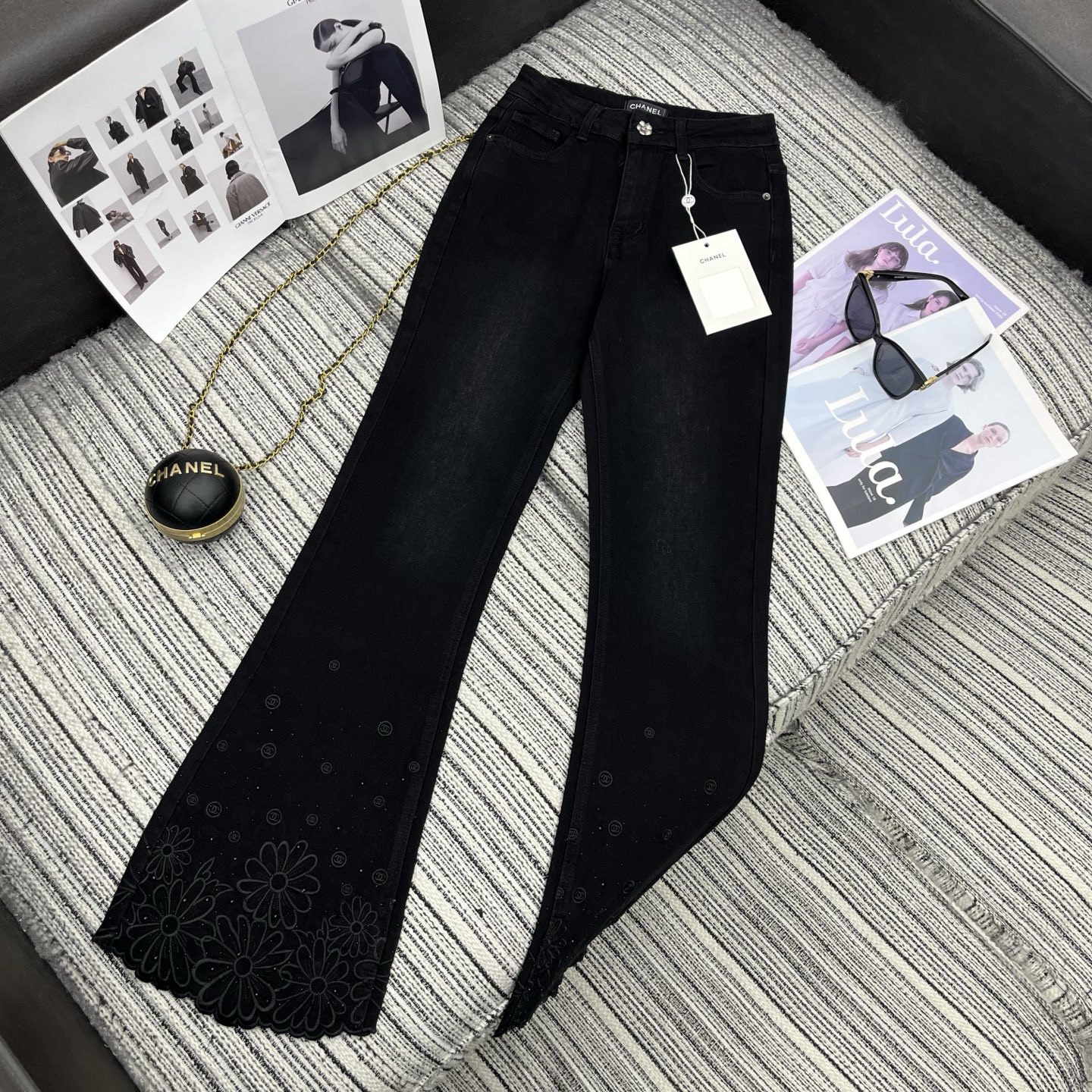 Chanel embroidered flower bell-bottomed jeans– TFYP Comcany