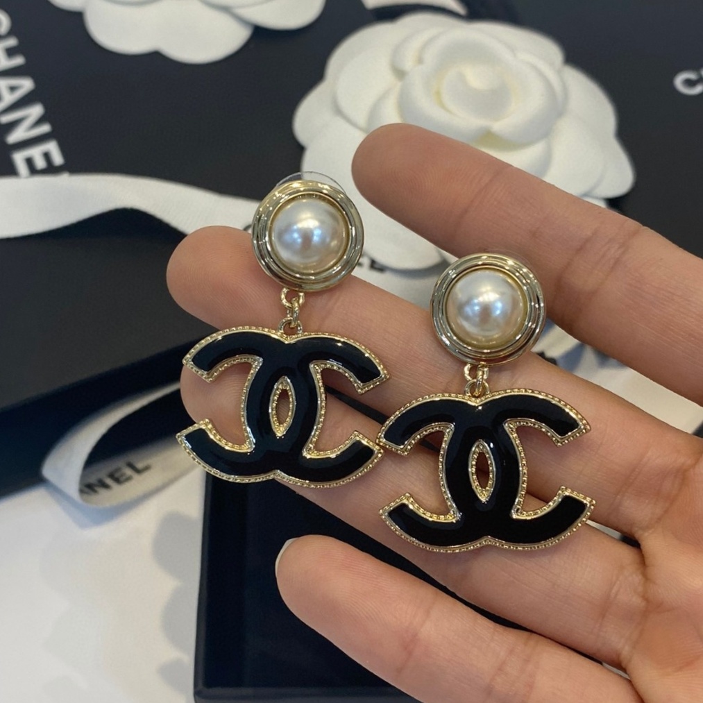 Chanel black letter pearl stud earrings– TFYP Comcany